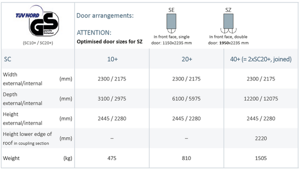 - Flat-packed (SC10+ / SC20+ / SC40+) or assembled (SC10+ / SC20+) delivery